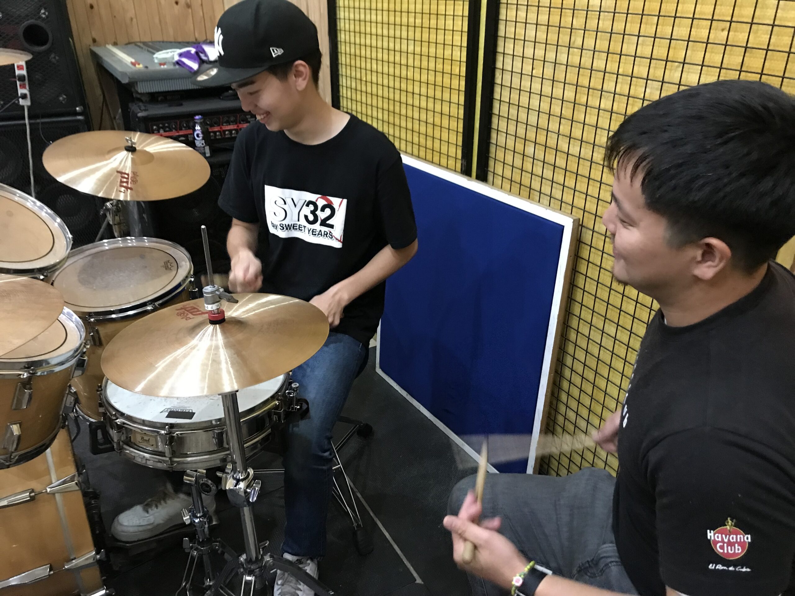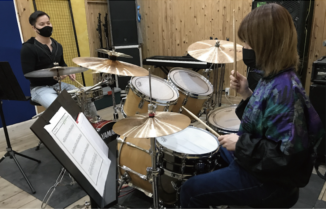 経験者の方には、細かい音色やタイミングの確認、リズムパターンチェンジや、自由にFill in を叩く方法など即興で音楽を作っていけるようにする方法などもレッスンしていきます。